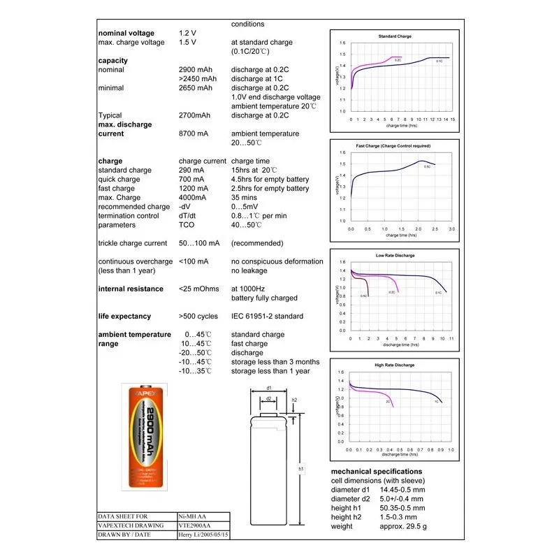 Vapex 4VTE2900AA AA/R6 Batteri NiMH 2900mAh 4-pack