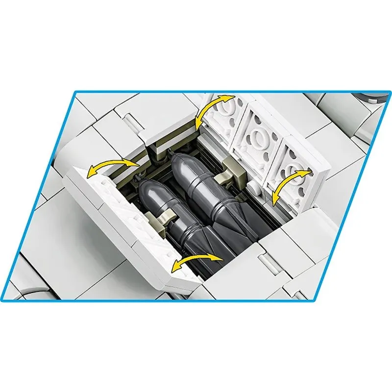 The Memphis Belle is the most famous B-17 Flying Fortress used by the United States Army Air Forces (USAAF) during World War II. The aircraft gained popularity thanks to its successful series of 25 bombing missions over Europe. An excellent war film also tells its story. The realistic EXECUTIVE EDITION brick model includes the paint scheme and markings of the historical machine and consists of over 1300 elements. This impressive model has a wingspan of 66cm when built. Once built it will also become one of the biggest pieces in your brick collection. Seeing the amazing details and admiring the amount of weapons you will quickly find out why this plane was called the "Flying Fortress"!