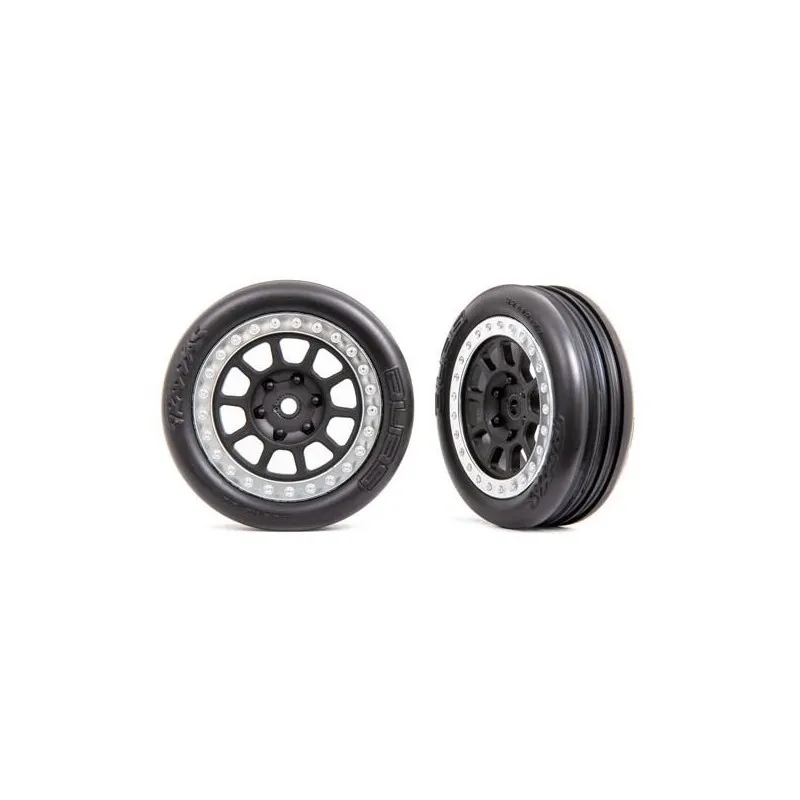 Traxxas 2471G Däck & Fälg Alias Ribbed Medium / Grå med Kromad Ring 2.2" 2WD Fram (2)