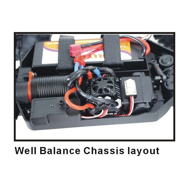 Från Hong Nor kommer en vass Racing Truck med riklig utrustning. Ett vasst borstlöst motorsystem och LiPo ack ger mycket bra prestanda, och wheelie baren behövs! Extra stora hjul, optimerad fjädringsgeometri och BigBore oljestötdämpare tillverkade av aluminium ser till att få ner kraften i marken.
