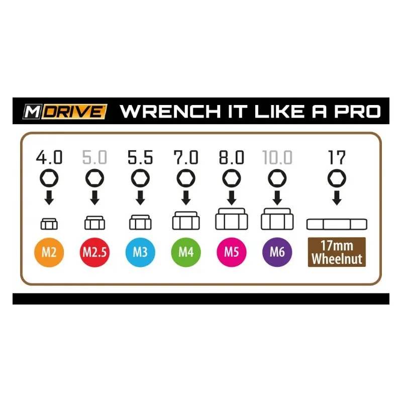 - Laser Engraving: M-DRIVE logo & size/type