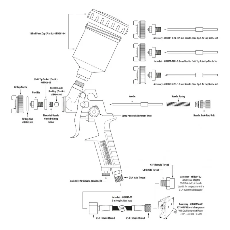 Hobbynox 001-02A RUBY Nål & Munstycke Set 0.5 mm
