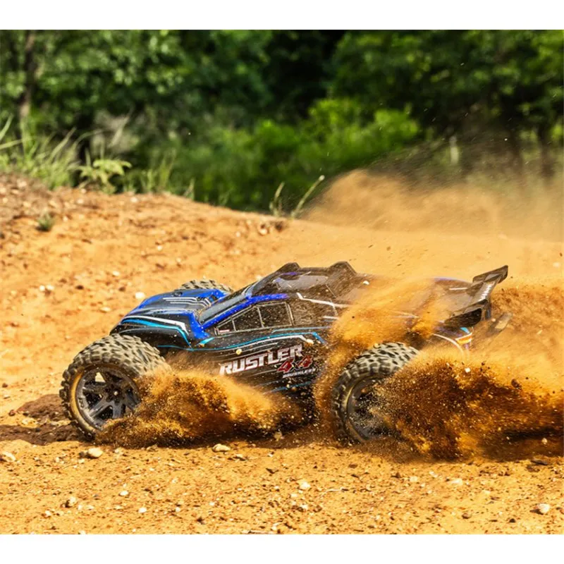 Rustler® 4X4 is the definitive go-to machine for speed, agility, and unstoppable 4WD traction. Beneath the reinforced clipless body, Rustler’s chassis sits low and wide for increased stability and sharp handling.