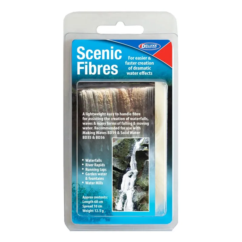 Deluxe Materials BD28 - Scenic Fibres 12.5gScenic Fibres - A lightweight easy to handle fibre for assisting the creation of waterfalls, waves & many forms of falling & moving water.Products to use with Scenic Fibres to make a perfect waterfall:BD39 Making