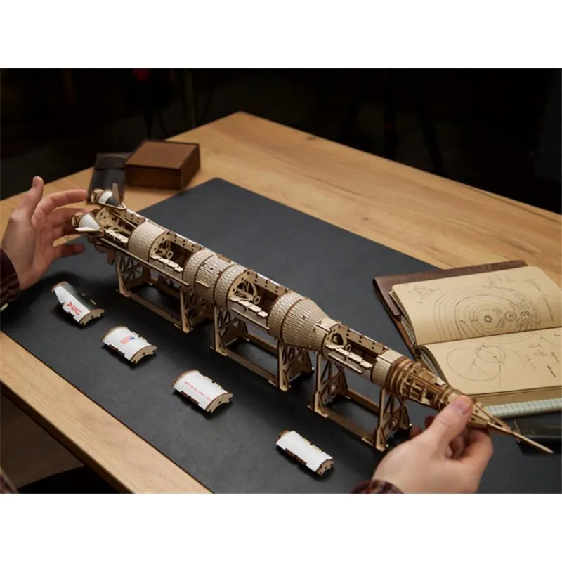 This impressive DIY scale model of the greatest rocket the world has known instantly becomes a treasured part of the Ugears NASA collection and the larger catalogue of Ugears 3D puzzles, DIY model kits, automatons, robots, wooden puzzle boxes and STEM Lab model kits. It will be coveted by anyone whose imagination was captured by the Apollo missions, by students of aviation history, space exploration enthusiasts, or by modeling hobbyists who want to add an outstanding showpiece to their collection. Can you imagine a better way to help children become rocket scientists (in the literal or figurative sense) than by helping them build an amazing scale model of the Saturn V, and letting them play and interact with the various stages and modules? Start the countdown to modeling adventure—T-minus 10…9…8…and blast off with Ugears!