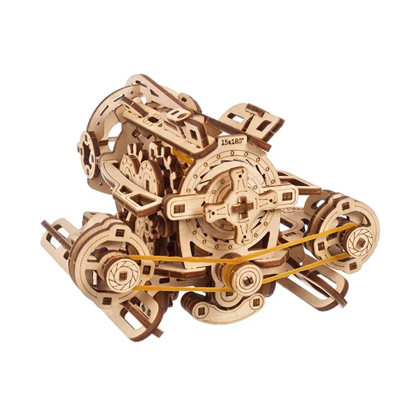 This DIY mini dirigible has that throwback steampunk sensibility Ugears is known for, with a tugboat-style cabin and back porch, wind-up rubber band motor with Start/Stop switch, engine-driven propellers, spinning ship's wheel, movable stabilizers, and wheels that allow the model to turn back and forth up to 2m along a flat surface, giving the thrill of mechanical motion. Our whimsical Airship features only 170 parts and is rated "Easy" so that even beginners can build this fanciful flyer.