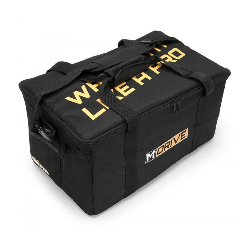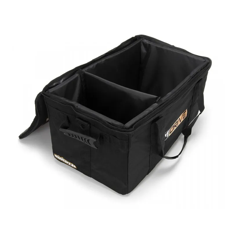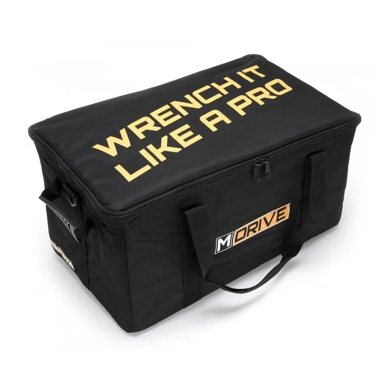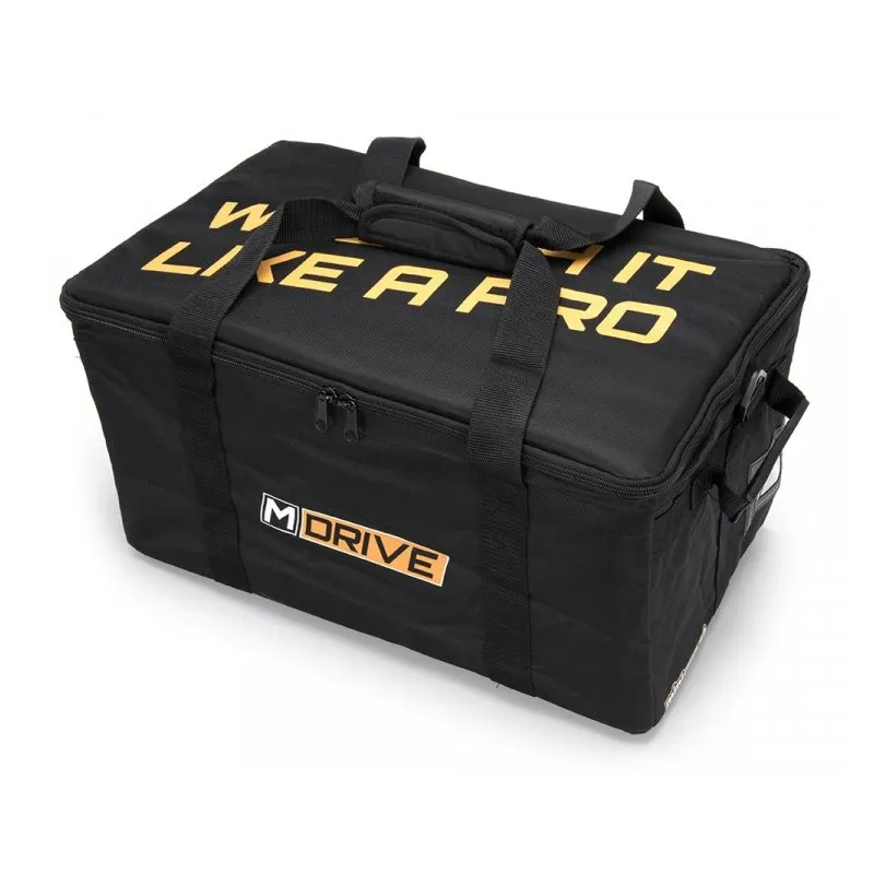 This 49 x 27 x 24cm black RC Vehicle bag from M-Drive is a lightweight case designed to safely store, transport & protect your 1/16-1/18 RC car/truck and it's transmitter. It also fits 1/10 cars (without the detacheable divider installed) such as Bandit, 4-Tec 2.0/3.0 cars & the Factory Five Hot Rods from Traxxas.
