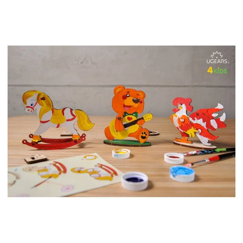 Color as you like: acrylic, gouache, watercolor, markers - you can use whatever you have. You can color the model by doing yourself, with friends or the whole family. Delicate contour lines on wooden parts show the silhouette of a bear to make it easy to paint.
