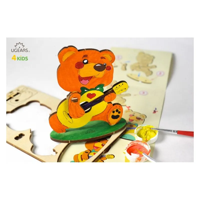 Cognitive and developing: UGEARS’s Teddy-Bear is a romantic, masterly guitar playing to his friends. His right paw moves up and down setting the rhythm of the melody. The left paw picks up the chord. Assembles easily and is fun to play with.